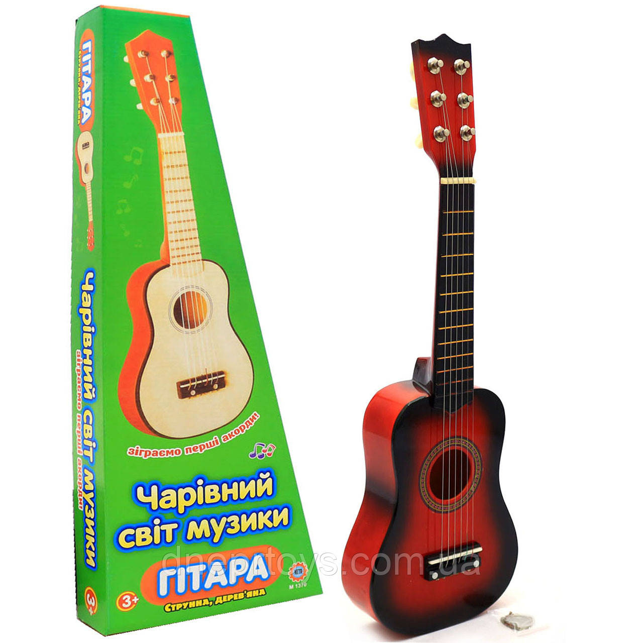 Іграшка дитяча гітара дерев'яна, струнна з медіатором, 52 см (M 1370)